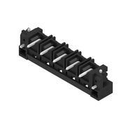 Conector para placa c.i., Conector macho, Brida para soldar, Conexión por soldadura THT, 7.62 mm, Número de polos: 5, 270°, Longitud del terminal de soldadura (l): 3.2 mm, estañado, negro, Caja