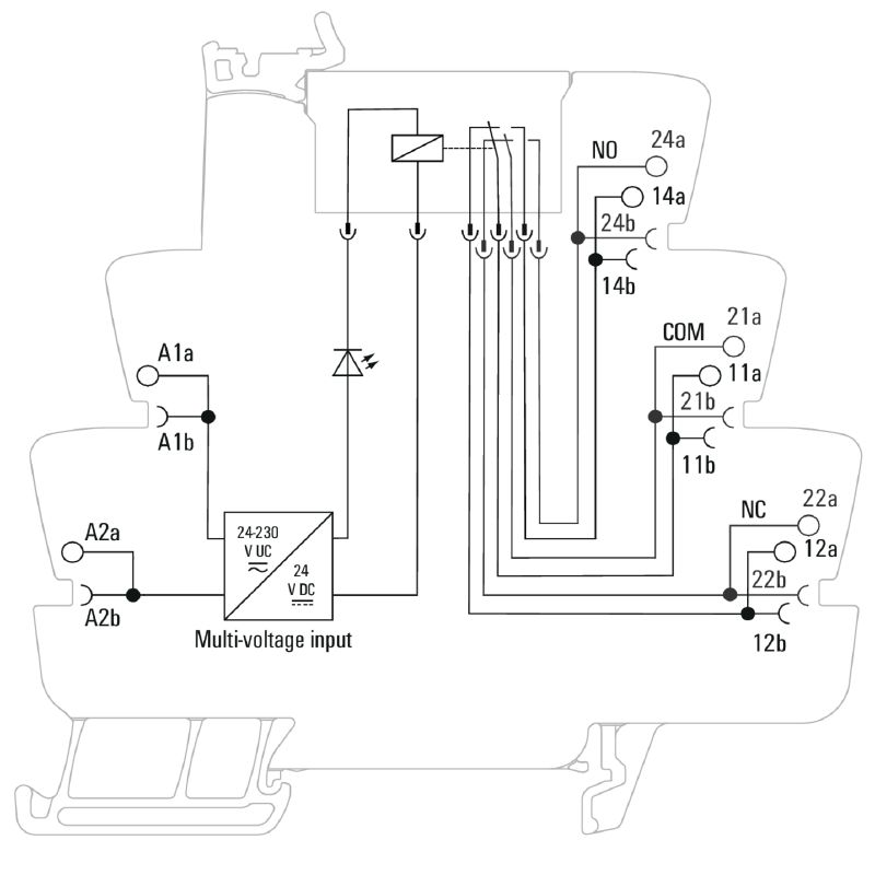 TERMSERIES, Relay module, Number of contacts: 2, CO contact AgNi gold-plated, Rated control voltage: 24…230 V UC ±10 %, Continuous current: 8 A, Screw connection, Test button available: No