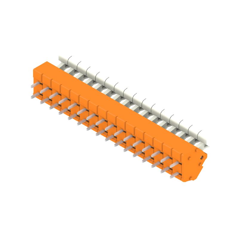 プリント基板端子台, 5.00 mm, 極数: 16, 135°, ソルダーピン長 (l): 3.5 mm, 錫メッキ, 橙色, アクチュエータとの耐張クランプ接続, クランプ範囲、最大 : 2.5 mm², 箱