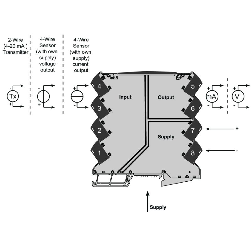 Analogue isolating amplifier, Configurable, with sensor supply, Input : I / U, Output : I / U