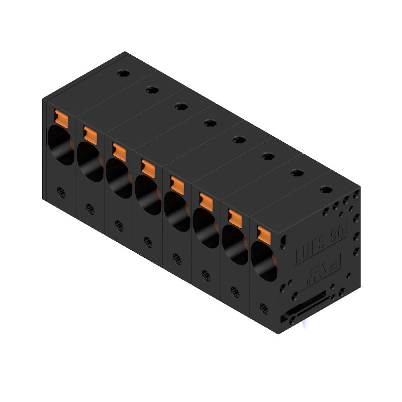 Printed circuit board terminals, 10.00 mm, Number of poles: 8, 90°, Solder pin length (l): 5 mm, black, PUSH IN without actuator, Clamping range, max. : 16 mm², Box