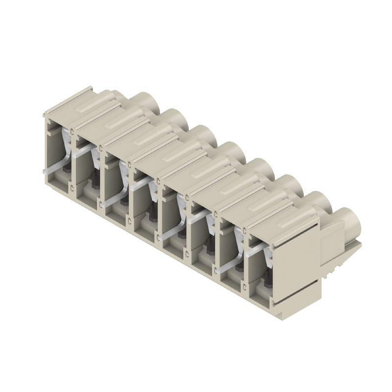 Printed circuit board terminals, 10.16 mm, Number of poles: 8, 90°, Solder pin length (l): 5 mm, tinned, Pebble grey, Clamping yoke connection, Clamping range, max. : 16 mm², Box