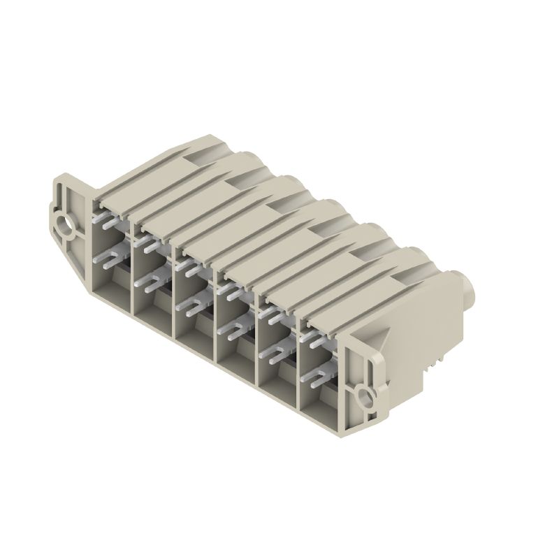 Printed circuit board terminals, 15.00 mm, Number of poles: 6, 90°, Solder pin length (l): 4.5 mm, tinned, Pebble grey, Clamping yoke connection, Clamping range, max. : 50 mm², Box
