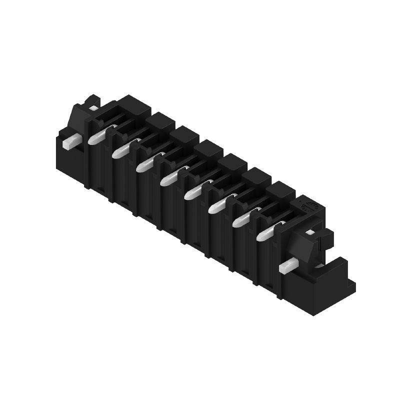 PCB plug-in connector, male header, Solder flange, THT/THR solder connection, 3.81 mm, Number of poles: 8, 90°, Solder pin length (l): 1.5 mm, tinned, black, Box
