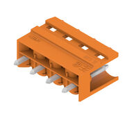 PCB plug-in connector, male header, open side, THT solder connection, 5.00 mm, Number of poles: 4, 180°, Solder pin length (l): 3.2 mm, tinned, orange, Box