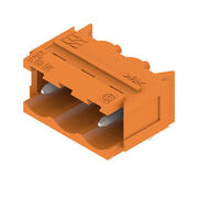 PCB plug-in connector, male header, Dovetails for fixing blocks, THT solder connection, 5.08 mm, Number of poles: 3, 90°, Solder pin length (l): 3.2 mm, tinned, orange, Box