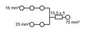 Wire connection cross-section, finely stranded with wire-end ferrules DIN 46228/1, min.