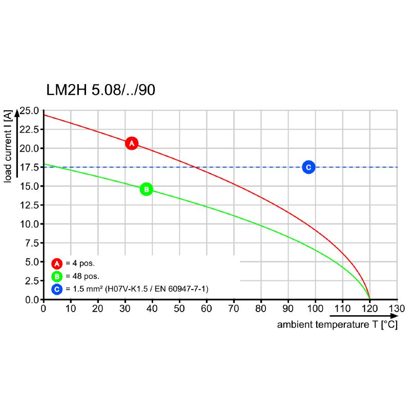 Corriente nominal, número de polos máx. (Tu=20 °C)