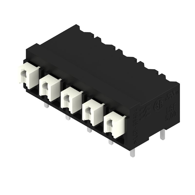 Bornes para circuito impreso, 5.00 mm, Número de polos: 5, 90°, Longitud del terminal de soldadura (l): 3.5 mm, negro, PUSH IN con pulsador, Sección de embornado, máx. : 1.5 mm², Tube