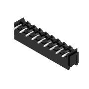 Conector para placa c.i., Conector macho, Colas de milano para bloques de fijación, Conexión por soldadura THT, 5.08 mm, Número de polos: 9, 90°, Longitud del terminal de soldadura (l): 3.2 mm, estañado, negro, Caja