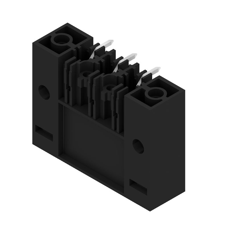 Conector para placa c.i., Conector macho, Brida-tornillo / brida de sujeción, Conexión por soldadura THT, 7.62 mm, Número de polos: 3, 270°, Longitud del terminal de soldadura (l): 3.5 mm, estañado, negro, Caja