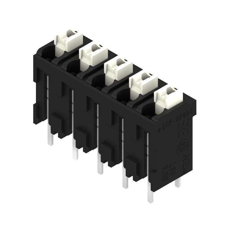 PCB 단자대, 5.00 mm, 극 수: 5, 180°, 솔더 핀 길이(l): 3.5 mm, 검정, 액추에이터 탑재 PUSH IN, 클램프 범위, 최대 : 1.5 mm², Tape