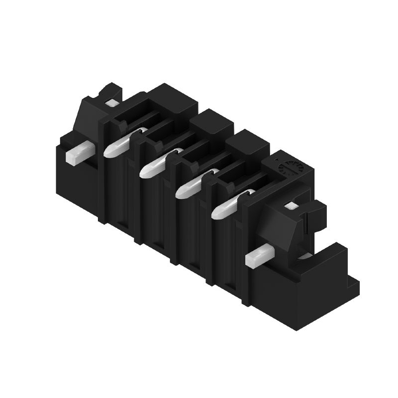 PCB plug-in connector, male header, Solder flange, THT/THR solder connection, 3.81 mm, Number of poles: 4, 90°, Solder pin length (l): 1.5 mm, tinned, black, Box