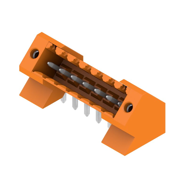PCB plug-in connector, male header, Flange, THT solder connection, 3.50 mm, Number of poles: 7, 135°, Solder pin length (l): 3.2 mm, tinned, orange, Box