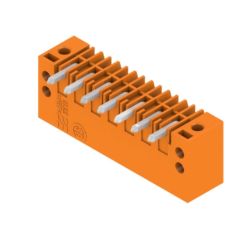 PCB plug-in connector, male header, Flange, THT solder connection, 3.50 mm, Number of poles: 7, 90°, Solder pin length (l): 3.2 mm, tinned, orange, Box