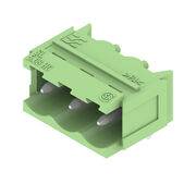 PCB plug-in connector, male header, Dovetails for fixing blocks, THT solder connection, 5.08 mm, Number of poles: 3, 90°, Solder pin length (l): 3.2 mm, tinned, Pale green, Box