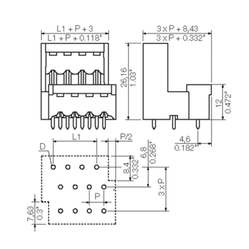PCB 플러그인 커넥터, 수형 헤더, 폐쇄 측/용접 플랜지, THT/THR 용접 결선, 5.00 mm, 극 수: 8, 180°, 솔더 핀 길이(l): 3.2 mm, 주석 도금, 검정, 박스