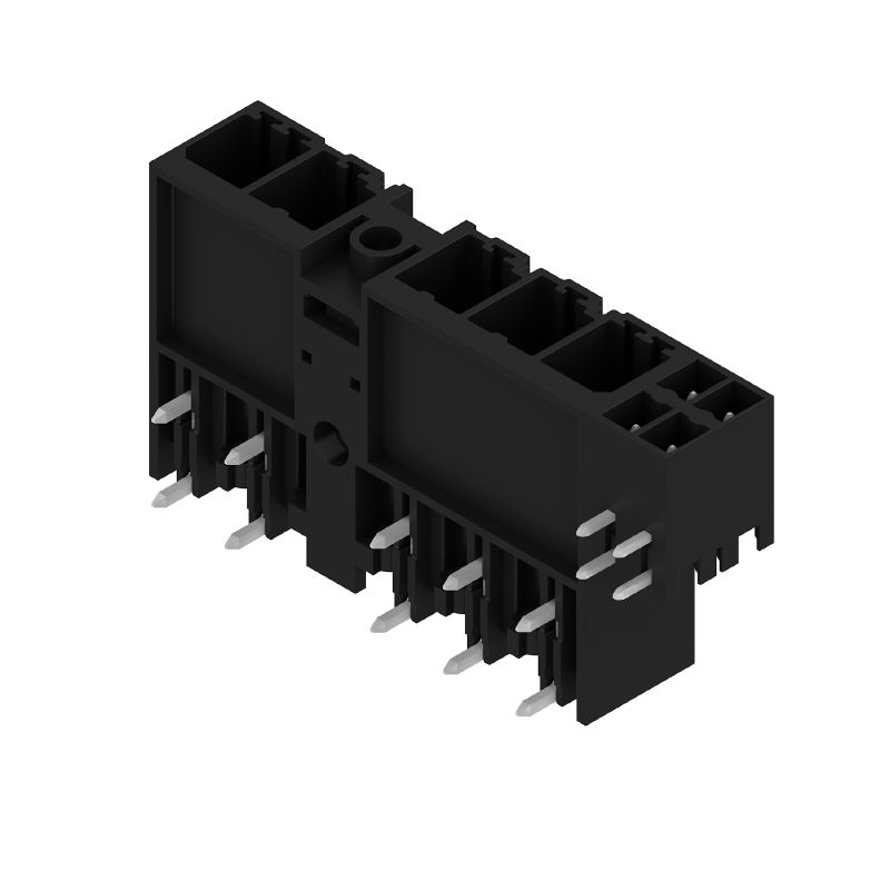PCB plug-in connector, male header, closed side, Middle screw flange, THT solder connection, 7.62 mm, Number of poles: 5, 90°, Solder pin length (l): 3.5 mm, tinned, black, Box