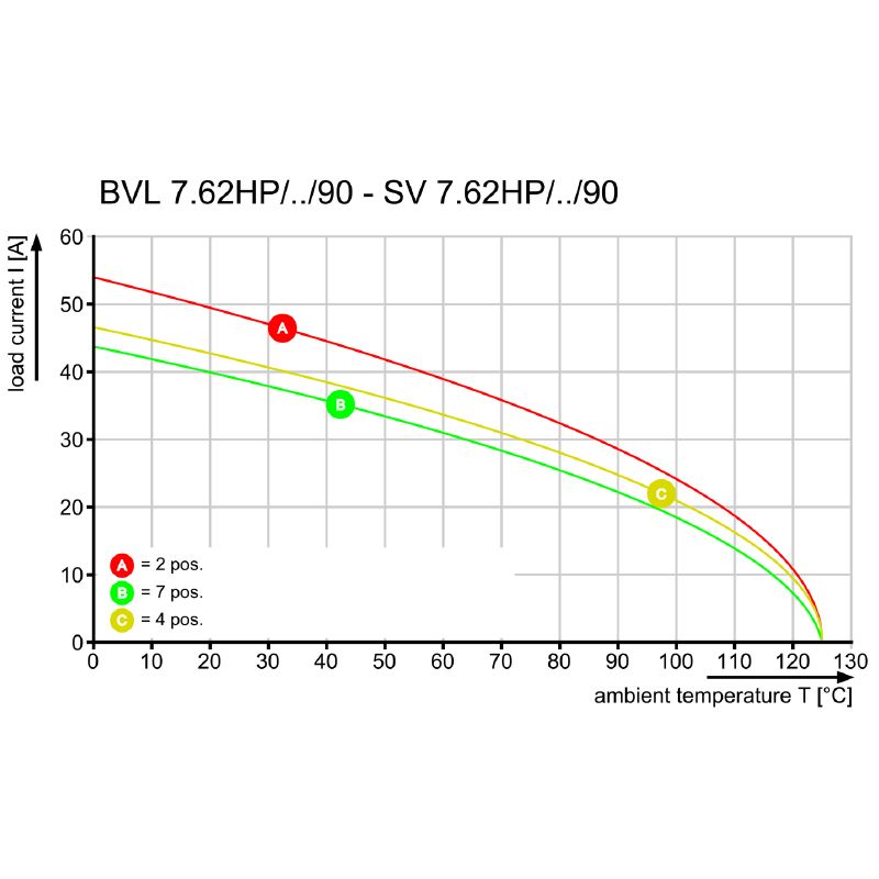Courant nominal, nombre de pôles max. (Tu = 20 °C)