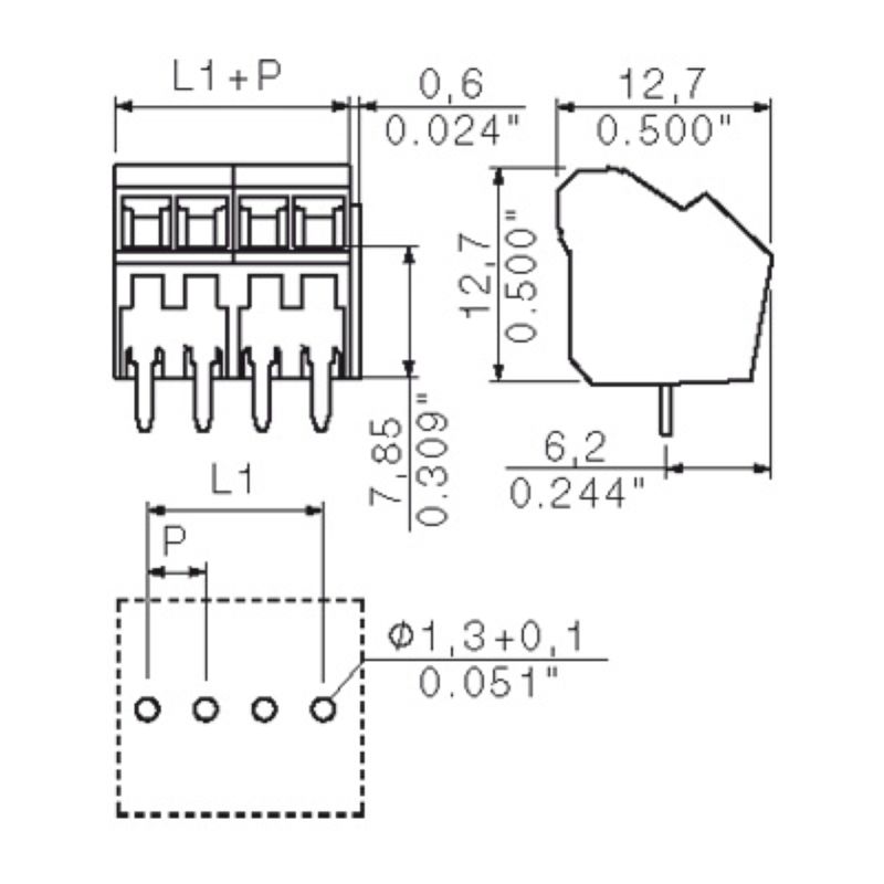 Longueur du picot à souder (l)