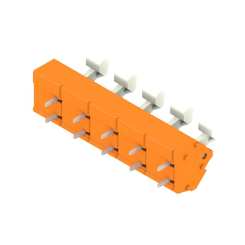 Bloc de jonction pour circuit imprimé, 10.00 mm, Nombre de pôles: 5, 135°, Longueur du picot à souder (l): 3.5 mm, étamé, Orange, Bloc de jonction à ressort avec actionneur, Plage de serrage, max. : 2.5 mm², Boîte