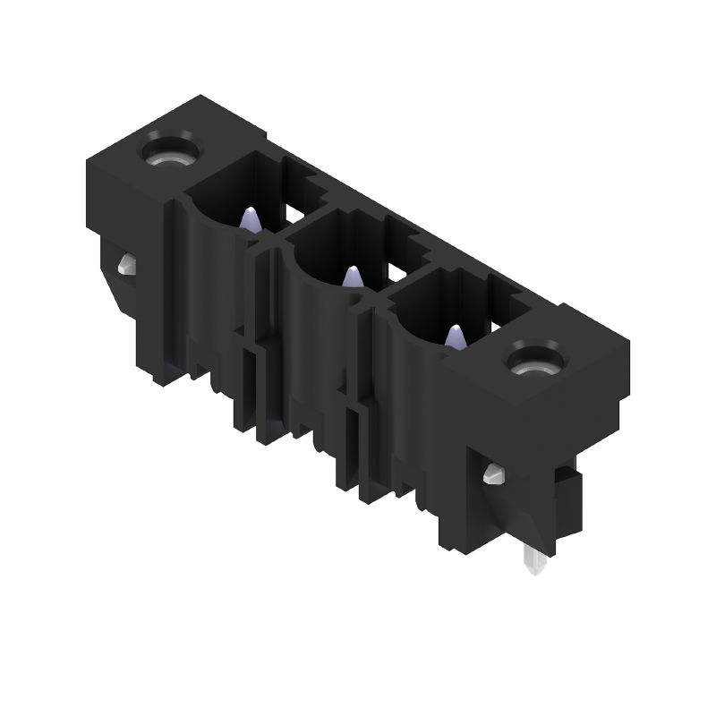 NYÁK dugaszoló csatlakozó, tűs érintkezősor, Forrasztható peremes aljzat, THT-forrasztott csatlakozás, 7.62 mm, Pólusszám: 3, 180°, Forrasztótüske hossza (l): 2.1 mm, ónozott, fekete, Doboz