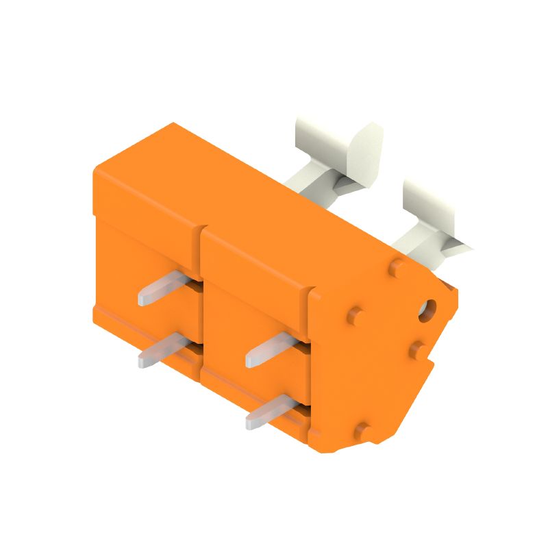 Morsetti per circuito stampato, 10.00 mm, Numero di poli: 2, 135°, Lunghezza spina a saldare (l): 3.5 mm, stagnato, arancione, Collegamento a molla autobloccante con attuatore, Campo di sezioni, max. : 2.5 mm², Box