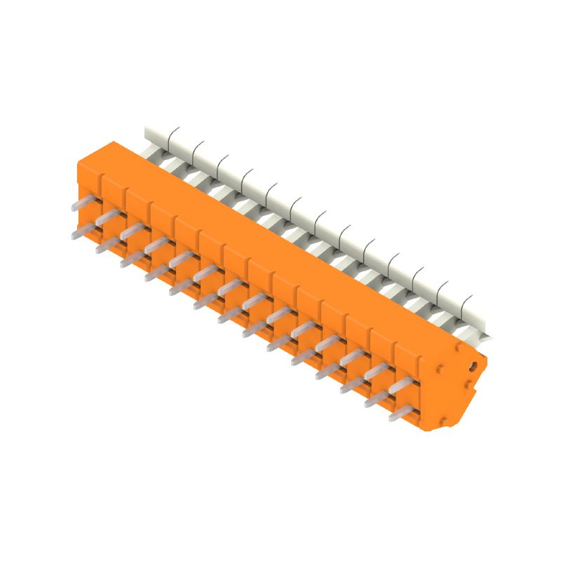 Morsetti per circuito stampato, 5.00 mm, Numero di poli: 14, 135°, Lunghezza spina a saldare (l): 3.5 mm, stagnato, arancione, Collegamento a molla autobloccante con attuatore, Campo di sezioni, max. : 2.5 mm², Box