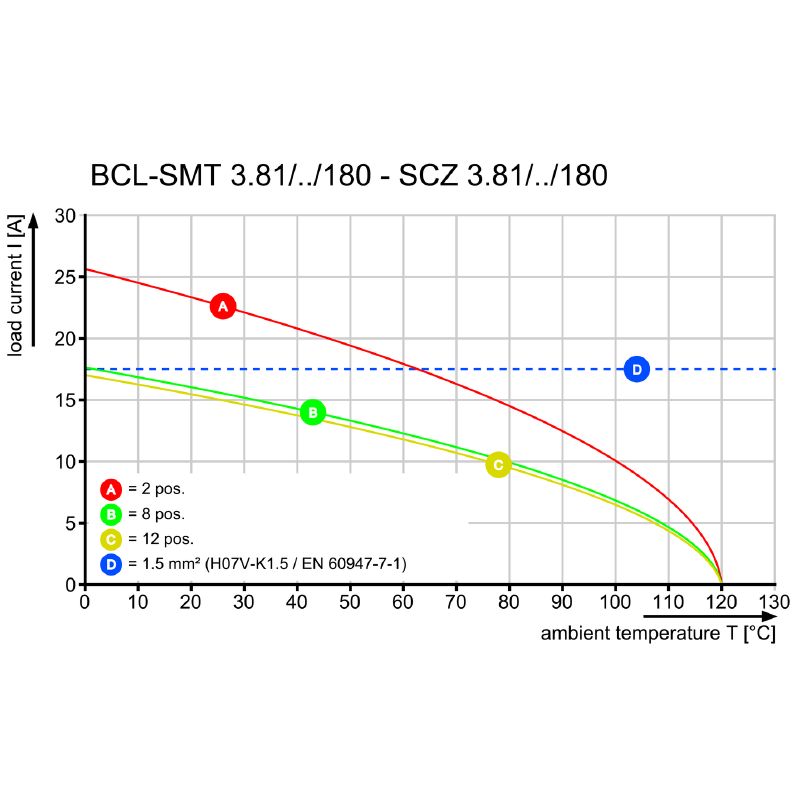 Corrente di dimensionamento, numero massimo di poli (Tu=20 °C)