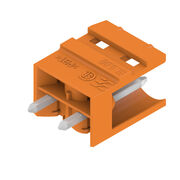 Connettore per circuito stampato, Connettore maschio, aperto lateralmente, Collegamento a saldare THT, 5.00 mm, Numero di poli: 2, 180°, Lunghezza spina a saldare (l): 3.2 mm, stagnato, arancione, Box
