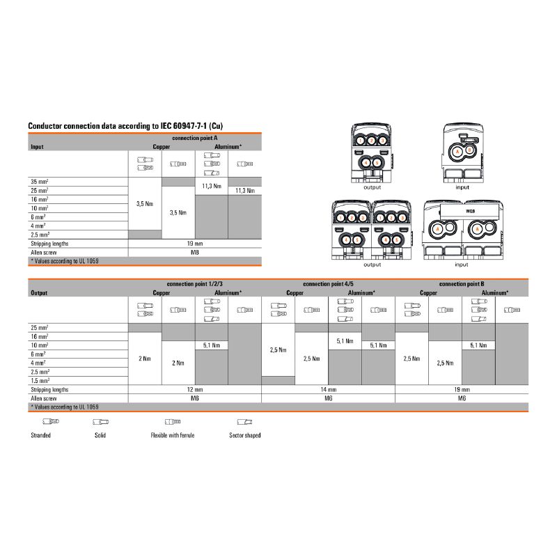 Sezione di collegamento cavo, flessibile con terminali DIN 46228/1, max.