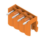 プリント基板用プラグインコネクタ, オス型ヘッダー, 開側, THRはんだ付け接続, 5.00 mm, 極数: 4, 90°, ソルダーピン長 (l): 3.2 mm, 錫メッキ, 橙色, 箱