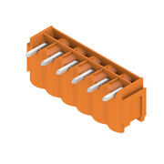 PCB plug-in connector, male header, Dovetails for fixing blocks, THT solder connection, 5.00 mm, Number of poles: 6, 90°, Solder pin length (l): 3.2 mm, tinned, orange, Box