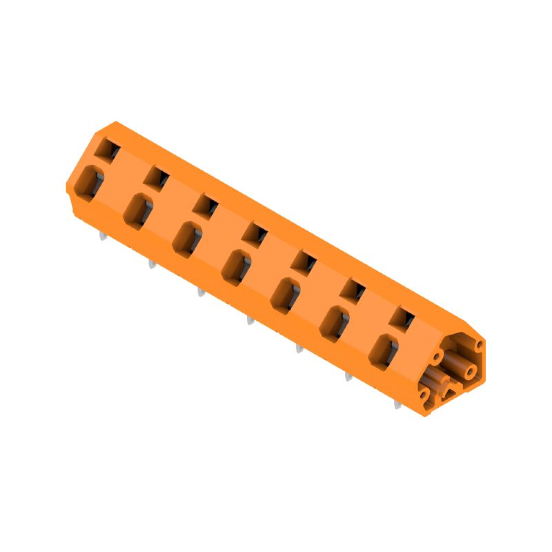 PCB 단자대, 10.00 mm, 극 수: 7, 135°, 솔더 핀 길이(l): 3.5 mm, 주석 도금, 주황색, 텐션 클램프 결선, 클램프 범위, 최대 : 2.5 mm², 박스