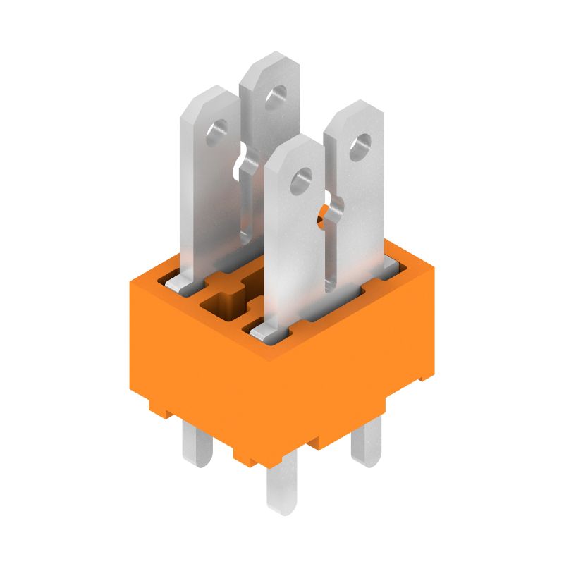 Nyomtatott áramköri panel csatlakozók, 5.00 mm, Pólusszám: 2, 180°, Forrasztótüske hossza (l): 3.5 mm, ónozott, narancssárga, Lapos csatlakozás, Doboz