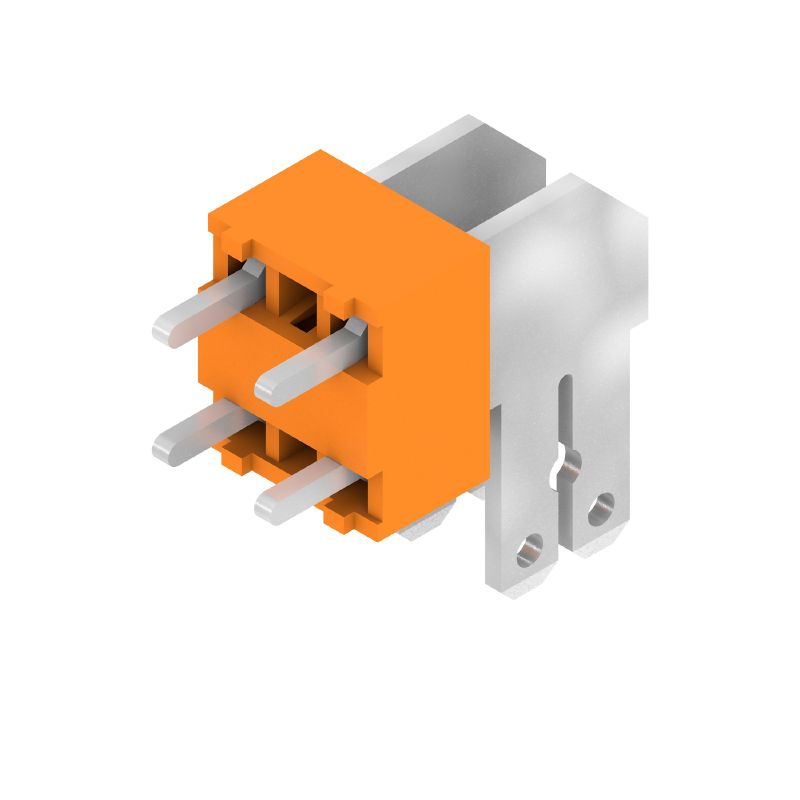 PCB 단자대, 5.00 mm, 극 수: 2, 90°, 솔더 핀 길이(l): 3.5 mm, 주석 도금, 주황색, 플랫 블레이드 결선, 박스