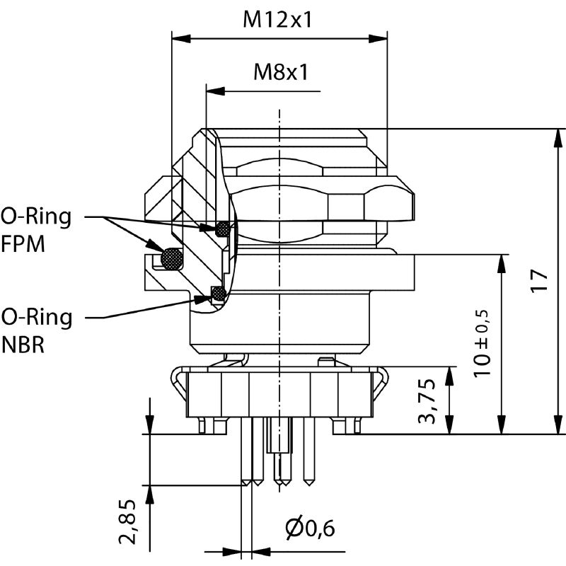 내장 플러그, M8, 장착 나사산: M10, 극 수: 8, 가닥/케이블 길이: