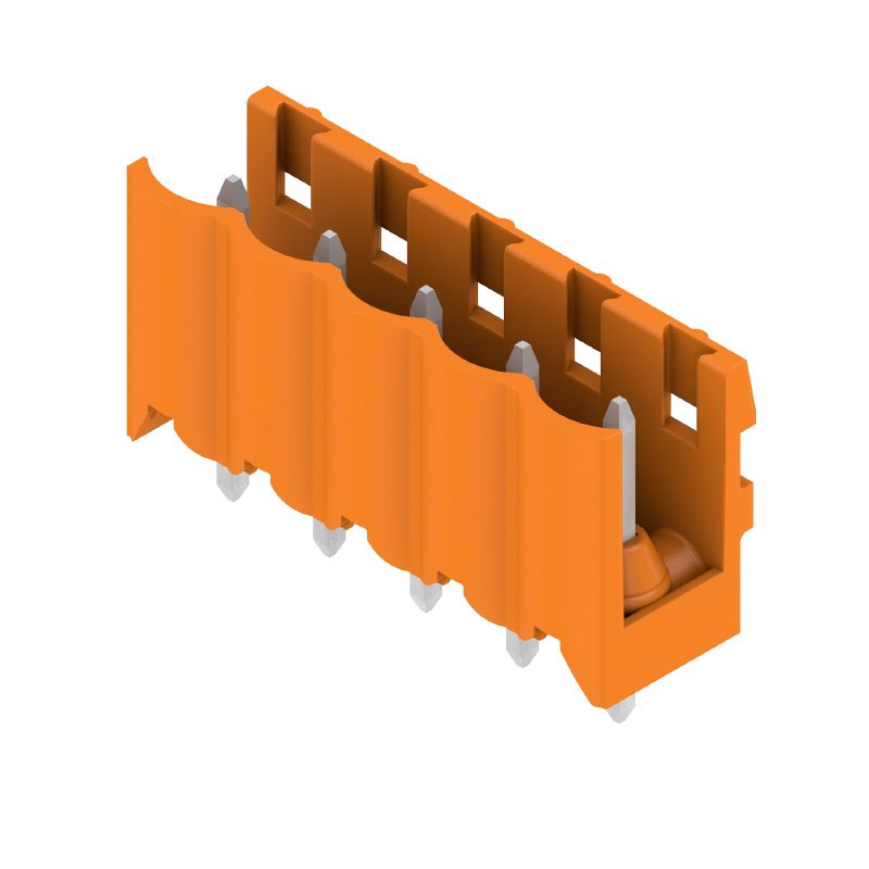 Штекерный соединитель печатной платы, Штырьковый соединитель, с боковой стороны открыто, Соединение THT под пайку, 5.00 mm, Количество полюсов: 5, 180°, Длина штифта для припайки (l): 3.2 mm, луженые, оранжевый, Ящик