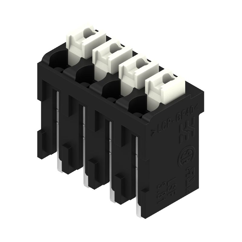 Printed circuit board terminals, 3.81 mm, Number of poles: 4, 180°, Solder pin length (l): 1.5 mm, black, PUSH IN with actuator, Clamping range, max. : 1.5 mm², Tape