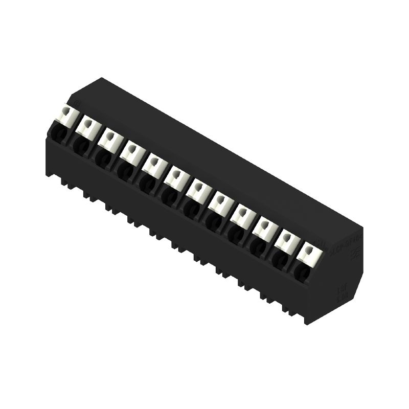 Клемма печатной платы, 5.08 mm, Количество полюсов: 12, 135°, Длина штифта для припайки (l): 1.5 mm, черный, PUSH IN с исполнительным устройством, Диапазон зажима, макс. : 1.5 mm², Tube