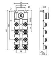 with M23 outlet, 19-pole, M12, 30 V, A-coded, LED: Yes, LED initiator: Yes, Wiring type: PNP