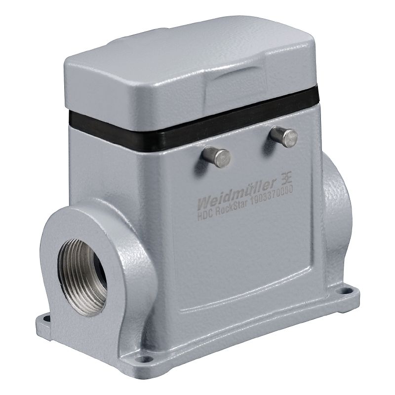 HDC enclosures, Installation size: 4, Protection degree: IP65, in plugged condition, Base housing, Side-locking clamp on upper side, high, with cover, Size of cable entries: M 25