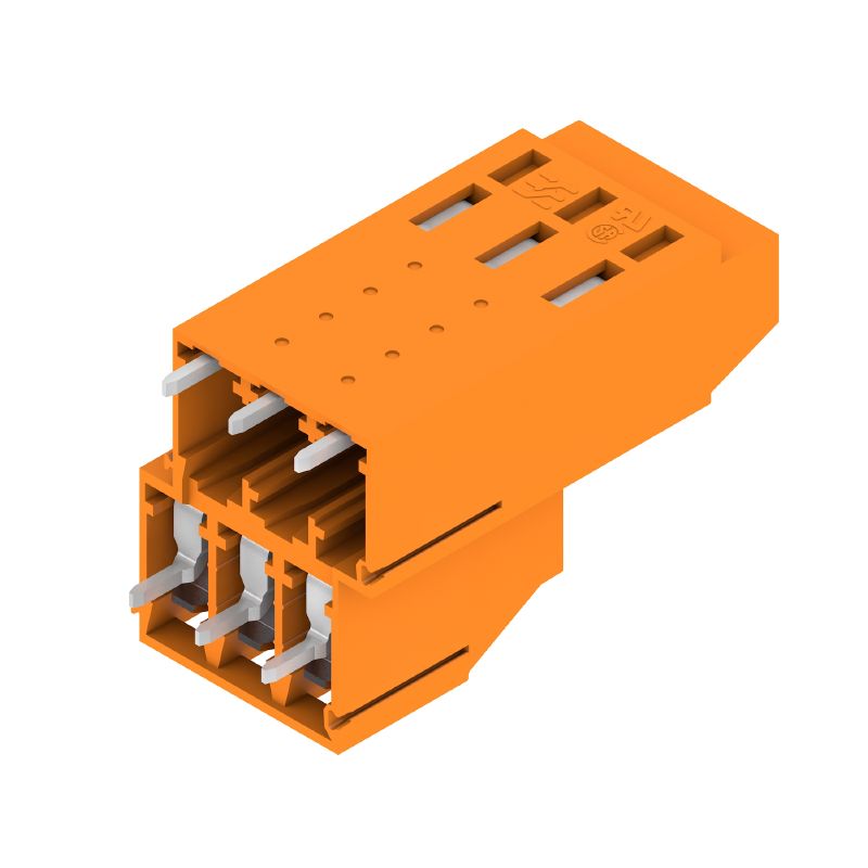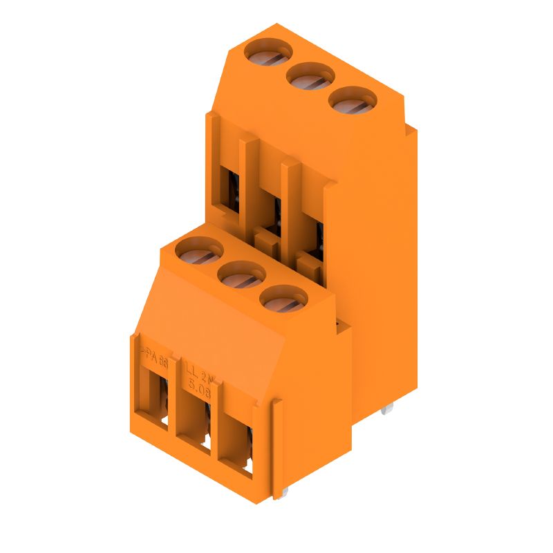 Printed circuit board terminals, 5.08 mm, Number of poles: 6, 90°, Solder pin length (l): 3.2 mm, tinned, orange, Clamping yoke connection, Clamping range, max. : 6 mm², Box