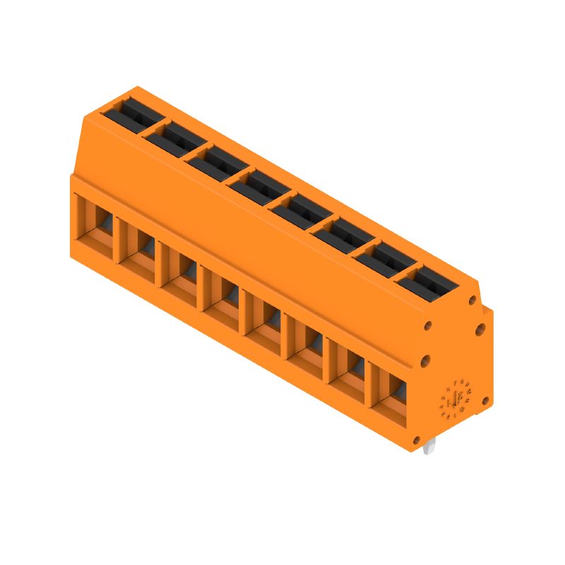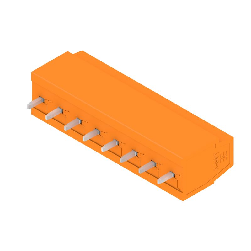 Printed circuit board terminals, 5.00 mm, Number of poles: 8, 90°, Solder pin length (l): 3.5 mm, tinned, orange, PUSH IN with actuator, Clamping range, max. : 2.5 mm², Box