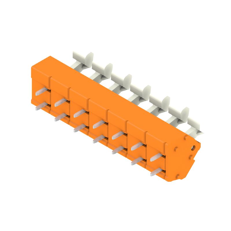Printed circuit board terminals, 7.50 mm, Number of poles: 7, 135°, Solder pin length (l): 3.5 mm, tinned, orange, Tension clamp connection with actuator, Clamping range, max. : 2.5 mm², Box