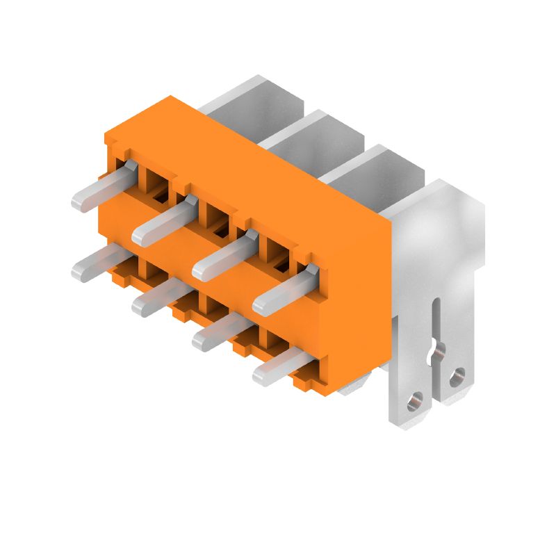 Printed circuit board terminals, 5.00 mm, Number of poles: 4, 90°, Solder pin length (l): 3.5 mm, tinned, orange, Flat-blade connection, Box