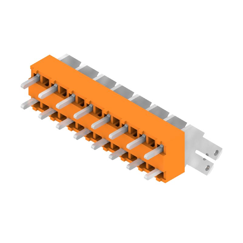 Printed circuit board terminals, 5.00 mm, Number of poles: 8, 135°, Solder pin length (l): 3.5 mm, tinned, orange, Flat-blade connection, Box