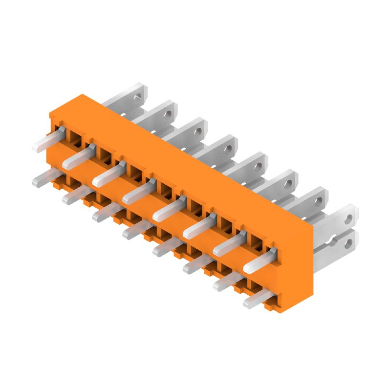 Printed circuit board terminals, 5.00 mm, Number of poles: 8, 180°, Solder pin length (l): 3.5 mm, tinned, orange, Flat-blade connection, Box