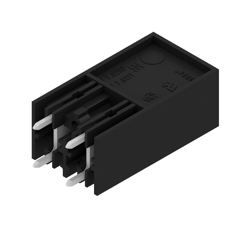 PCB plug-in connector, male header, closed side, THT solder connection, 7.62 mm, Number of poles: 2, 180°, Solder pin length (l): 3.5 mm, tinned, black, Box
